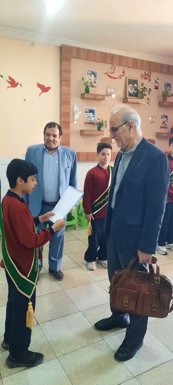 حضور استاد فریدون عموزاده خلیلی به همراه مسئولین محترم مجتمع در جمع تعدادی از دانش‌آموزان مدرسه در محل نمازخانه🌿