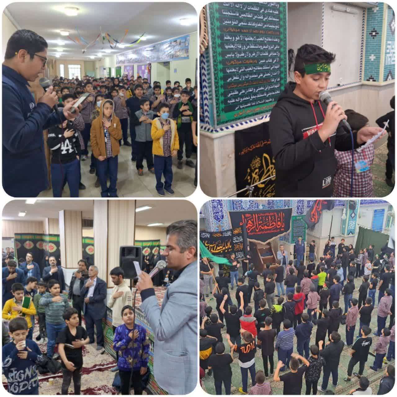 برگزاری مراسم عزاداری(روضه خوانی،سینه زنی و...)به مناسبت ایام فاطمیه🏴در مراسم صبحگاه همچنین نمازخانه مدرسه،و البته مسجد حضرت امام حسین(علیه السلام)🌱